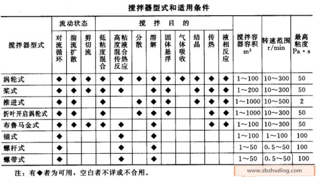 二、按攪拌器型式和適用條件選型