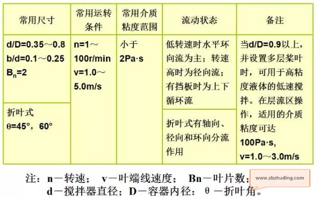 槳式攪拌器的轉(zhuǎn)速一般為20~100r/min ,其常用參數(shù)見下表: